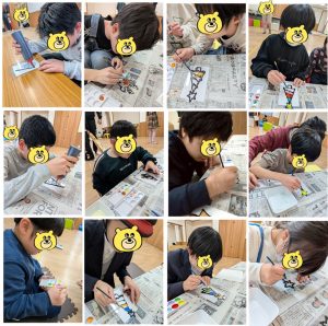 「見本といっしょがいい!」や「好きな絵にしたい!」「この色が好き!」素敵な作品にしようと真剣顔です(笑)。
