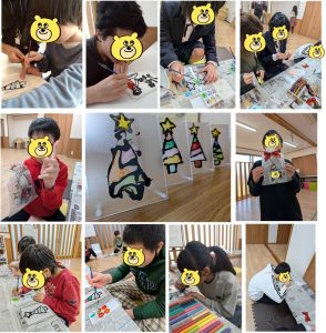 子ども達が毎年楽しみにしているクリスマス☆ 今年はステンドグラス風のクリスツリー製作をしました。