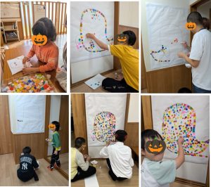 10月はハロウィンお化けのモザイクアート製作や、ボーリングを楽しみましたよ。